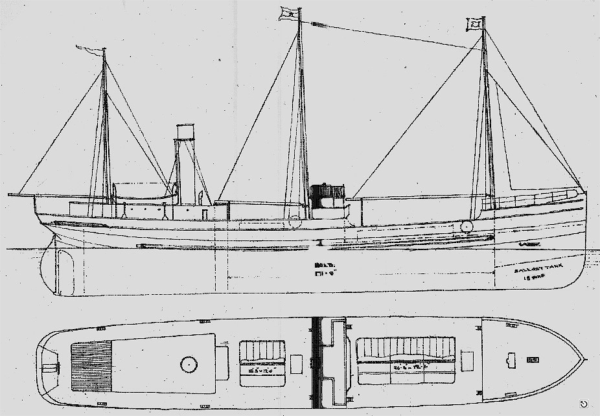Robertson of Glasagow she grossed 401 tons and measured 43.40 x 7.64 x 3.25m.