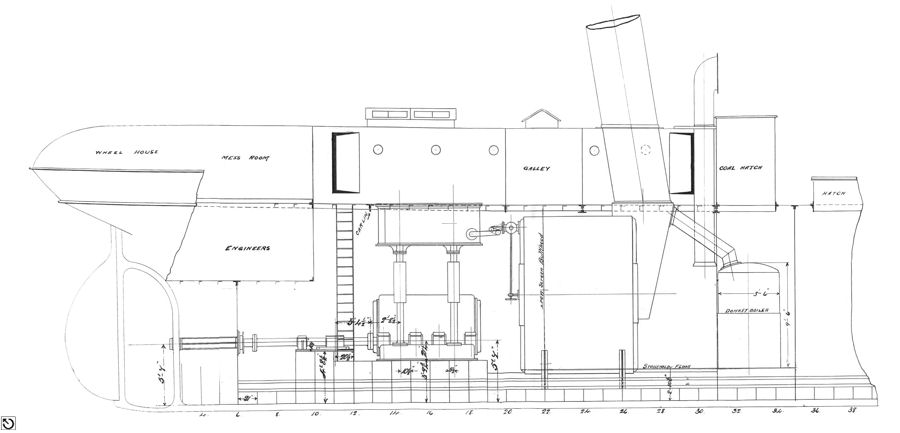 dimensions of 175ft x 26ft.8in and she was powered by a single quadruple steam